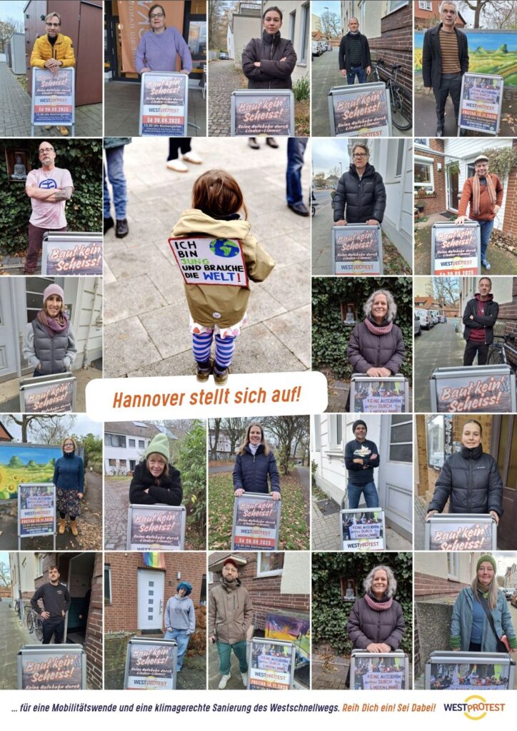 WESTprotest hat eine Foto-Aktion gestartet: „Hannover steht auf für Mobilitätswende und eine klimafreundliche Sanierung des Westschnellwegs“. Das Türchen 12 im Lebendigen Adventskalender Linden-Süd zeigt euch, wer schon alles dabei ist 😉